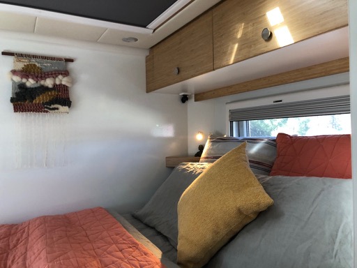 Our version of RV minimalism allows some creature comforts. For example, most camping furniture is a compromise between weight, size and comfort. Since we had the room and budget, we added some glamping furniture from Snow Peak. The Snow Peak products are comfortable, high quality, durable and look great. It makes our “outdoor living room” a nice place to work and relax. (I have no affiliation with Snow Peak…)