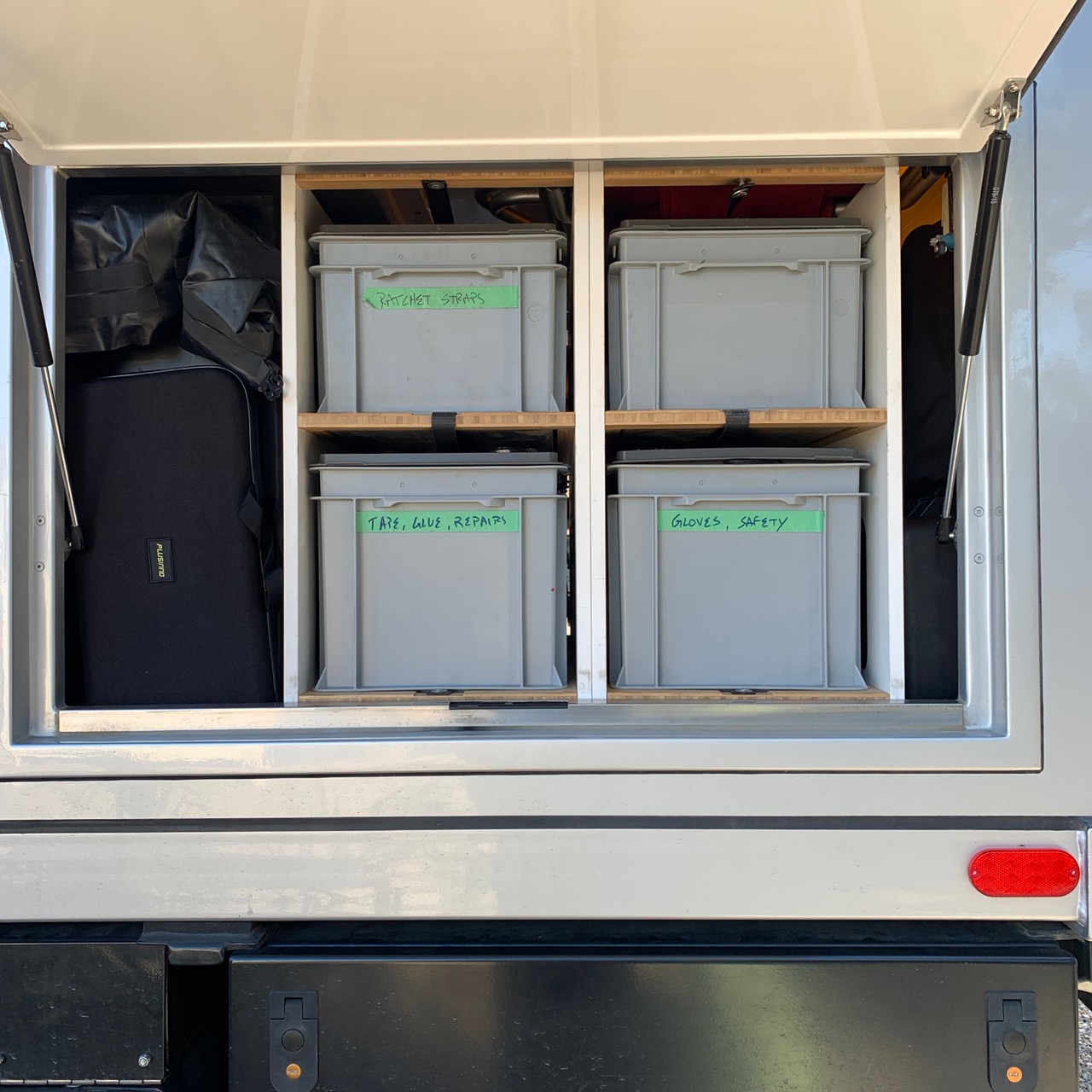 | Honda EU2200i Portable Inverter Generator | O | Not needed in full sun but when boondocking for long periods under trees or clouds it’s handy. That said, the truck engine is also a “generator”. If we drove more often, or ran the truck engine for a bit while parked, this item could be omitted. |