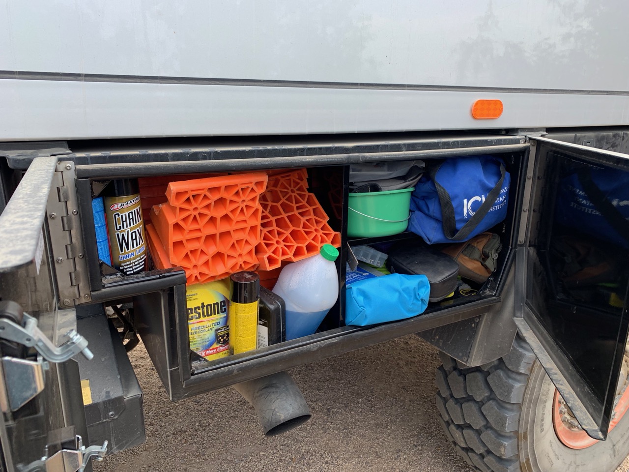 - Extra fluids: engine oil, transmission fluid, coolant, distilled water