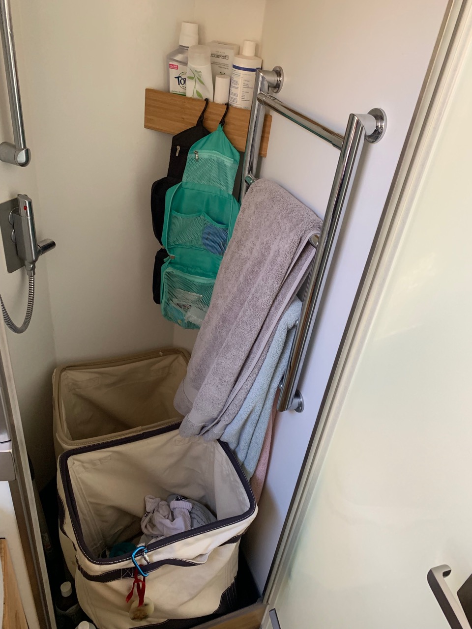 - Personal belongings (we’re each assigned one “drawer”)