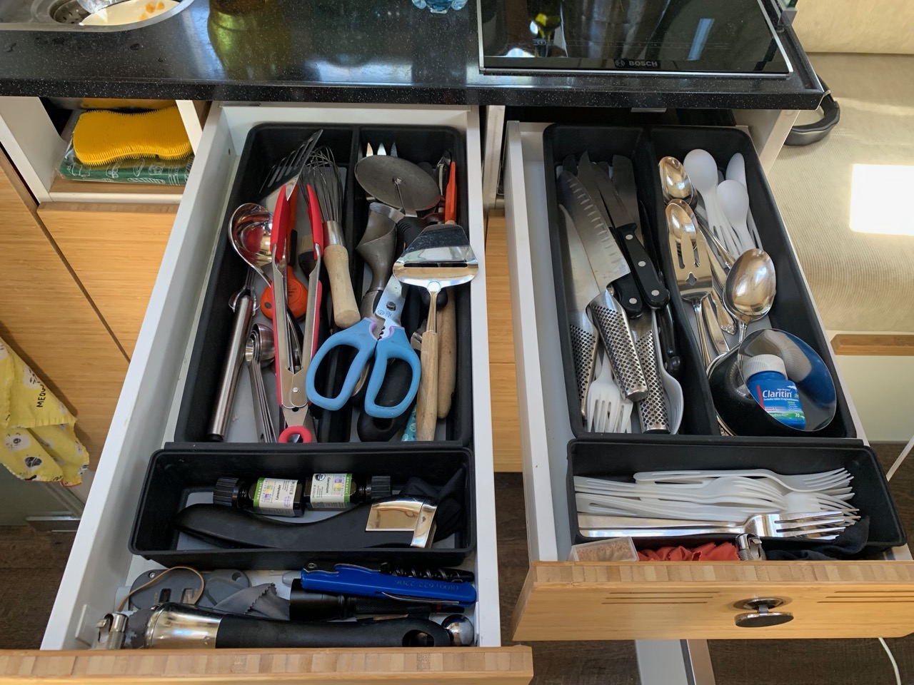 So far, that’s most of what we feel we can’t live without! But it’s constantly changing in the “less is better” direction. Feel free to ask questions in comments!