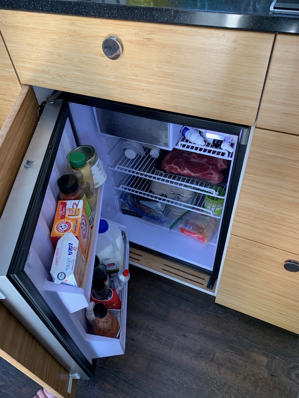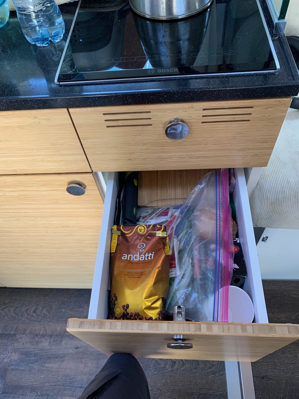 Description Use? Notes Instant Pot 6qt pressure cooker F One of Lily’s favorite kitchen items! Magma 10 Piece Gourmet Nesting Stainless Steel Cookware Set, Induction Cooktops F Very compact but have all needed pan sizes. Extremely efficient on induction stove. AeroPress Coffee and Espresso Maker F Used every day. Coffee Gator Pour Over Kettle – Fixed Thermometer for Exact Temperature (40floz) F Used every day. Oster Blend-n-Go Personal Blender F Perfect size for our tiny home.